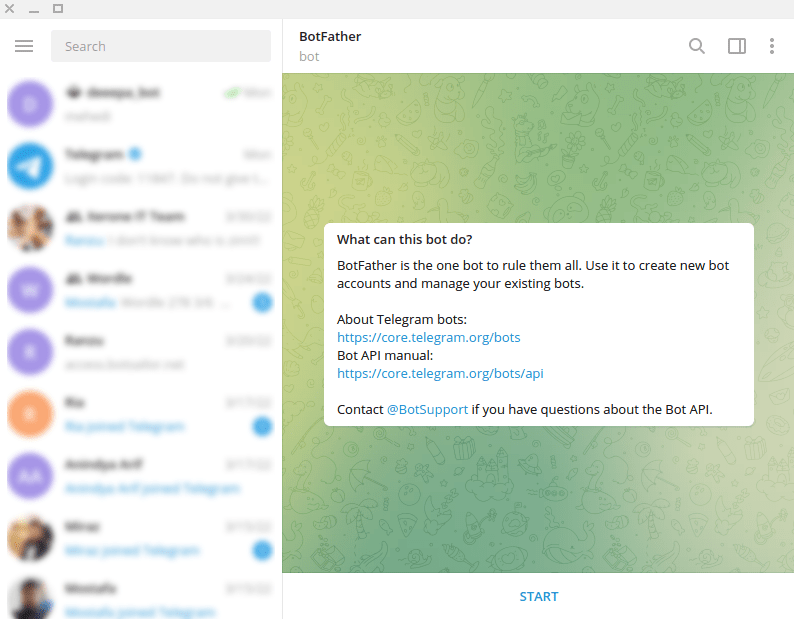 To build a Telegram bot with OWD Solution - HDS Cut & Edge, first, open your Telegram App. Then in the search bar of the app, search with the ‘BotFather’ keyword. Then select the verified BotFather account.